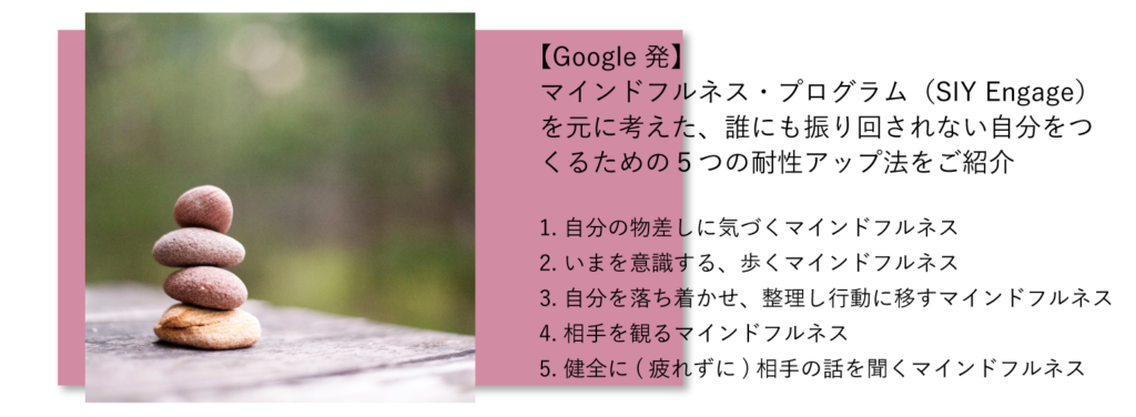 【Google発】マインドフルネス・プログラム(SIY Engage)を元に考えた誰にも振り回されない自分をつくるための5つの耐性アップ法